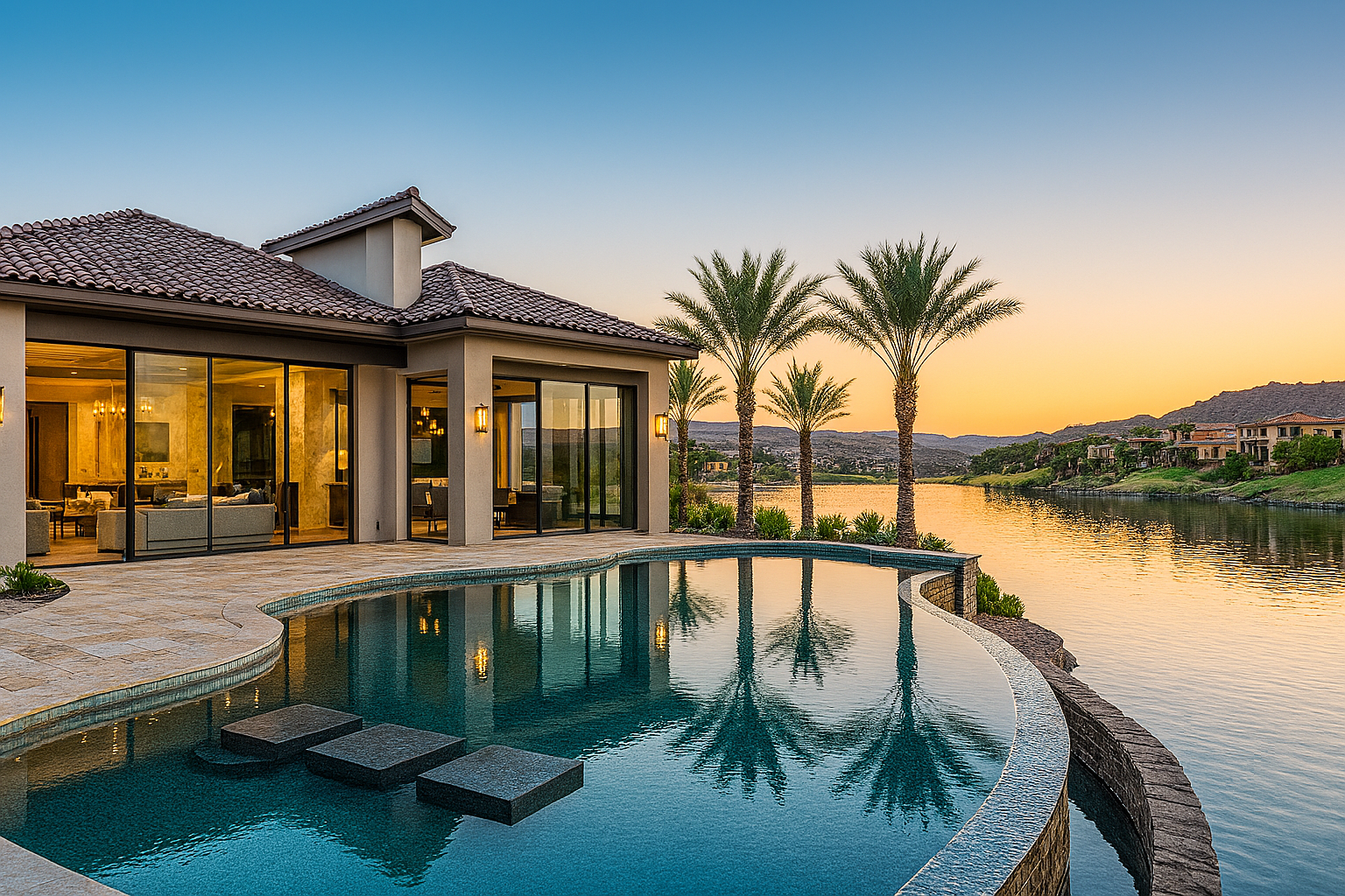 • Luxury waterfront homes with infinity-edge pools, outdoor kitchens, and lake views